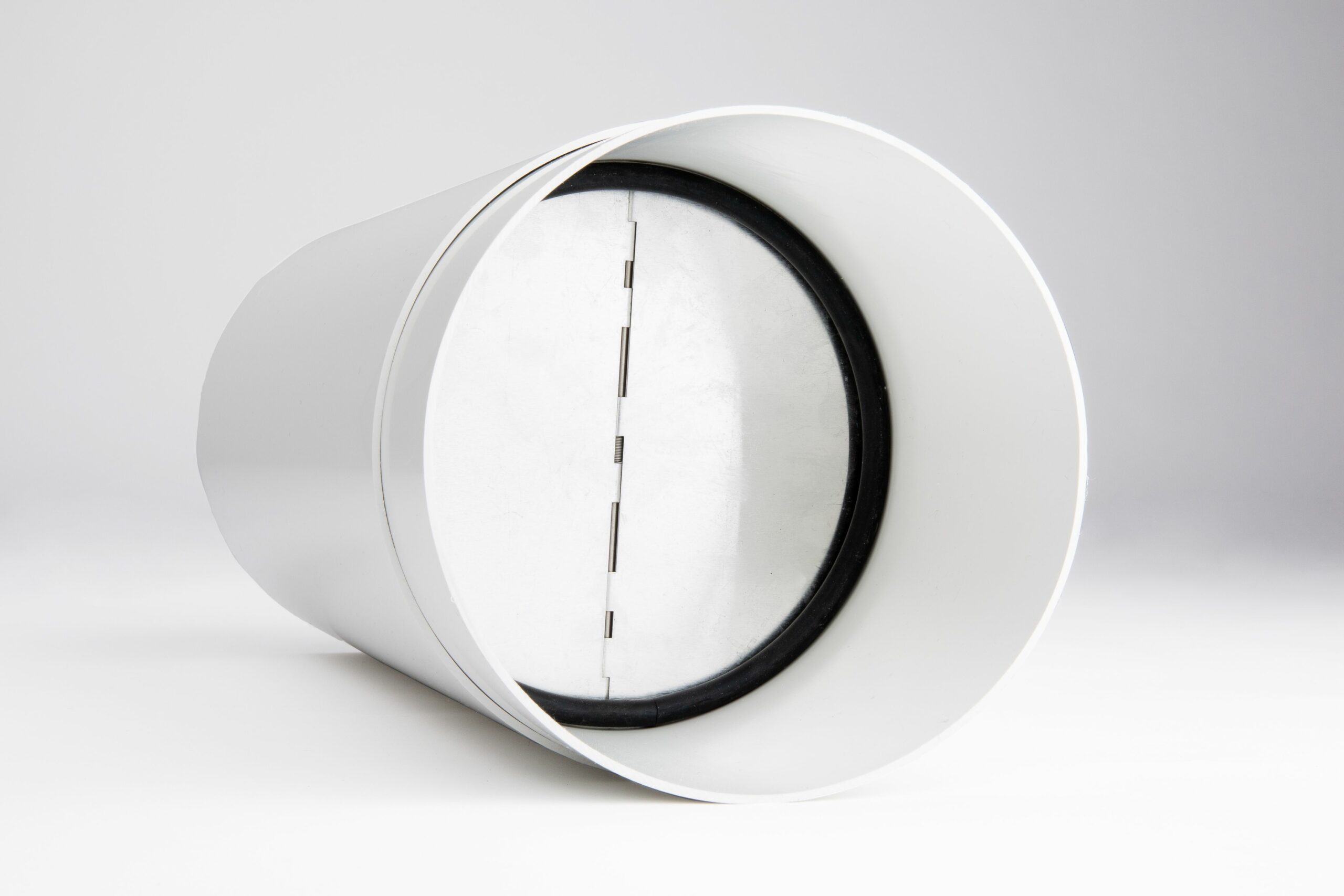 - CAR Sturmklappen, 2 Stück hintereinander im Teleskoprohr, Gehäuse Stahl verzinkt, Alumium Klappenblätter, Edelstahl Achse und Federn. Blower Door dicht, geprüft mit Zertifikat.