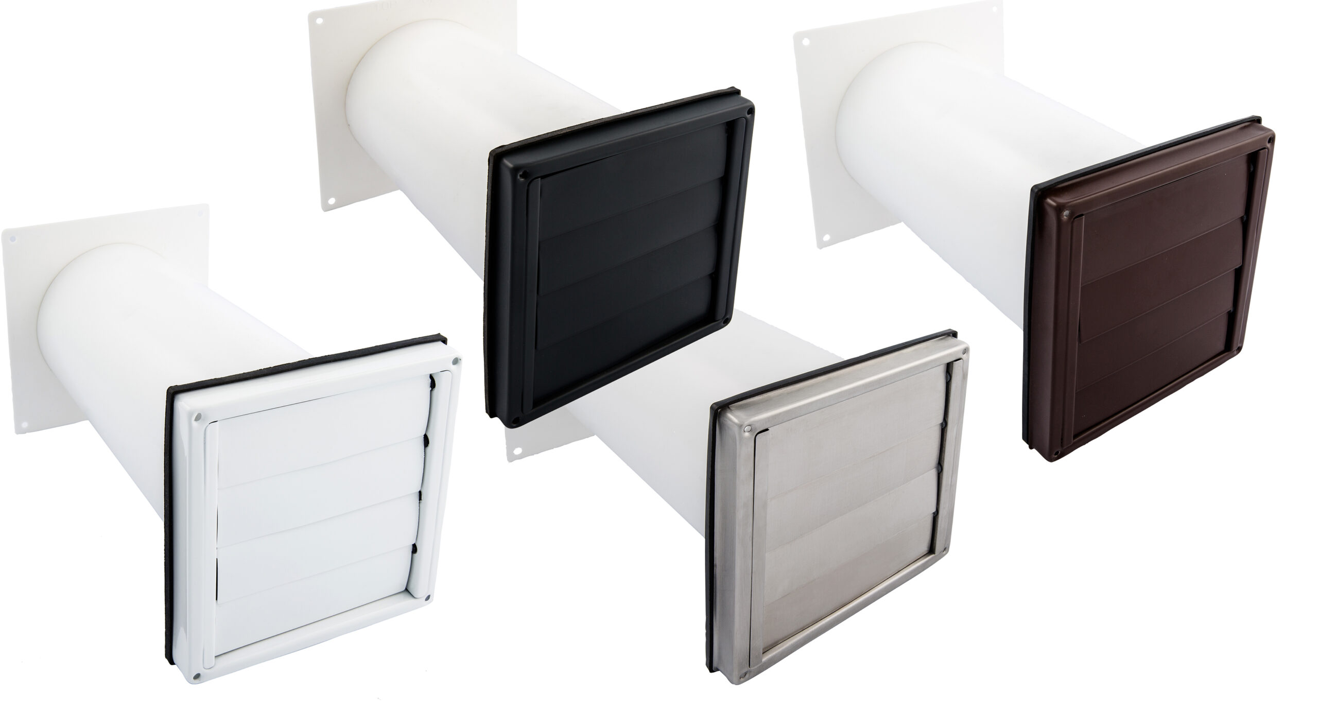 2 Grad Mauerkasten Ø 100, 125, 150 Rohr Set Edelstahl Dunstabzug Rückstauklappe 2GS1-R-MKWSQLE, runter zur Haube mit Aluflex