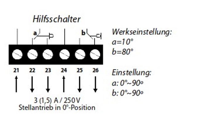 - wahlweise mit oder ohne Hilfsschalter, Endlagenschalter zwei Stück,