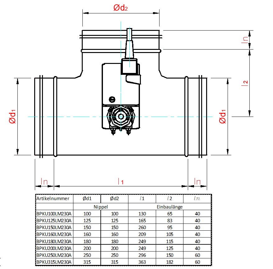 Bypassklappe mit Stellantrieb Belimo LM230A für 230V 100-315
