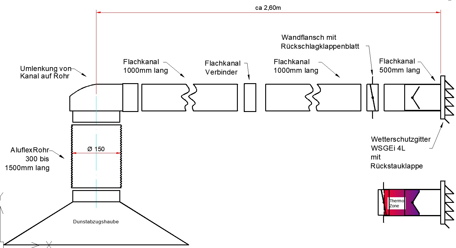 5 Rezensionen für Flachkanal Set 220×55, 220×90, 222×89 mit Edelstahl Wetterschutzgitter S6-K-WSGEi, runter zur Haube mit Aluflex