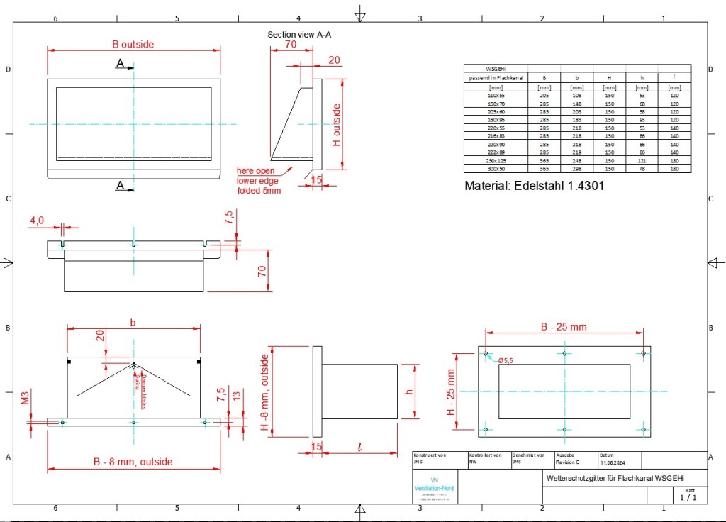 4 Rezensionen für Mauerkasten mit Edelstahl Wetterschutzgitter mit Rückschlagklappe MKWSGEHi, 220×55, 220×90, 222×89