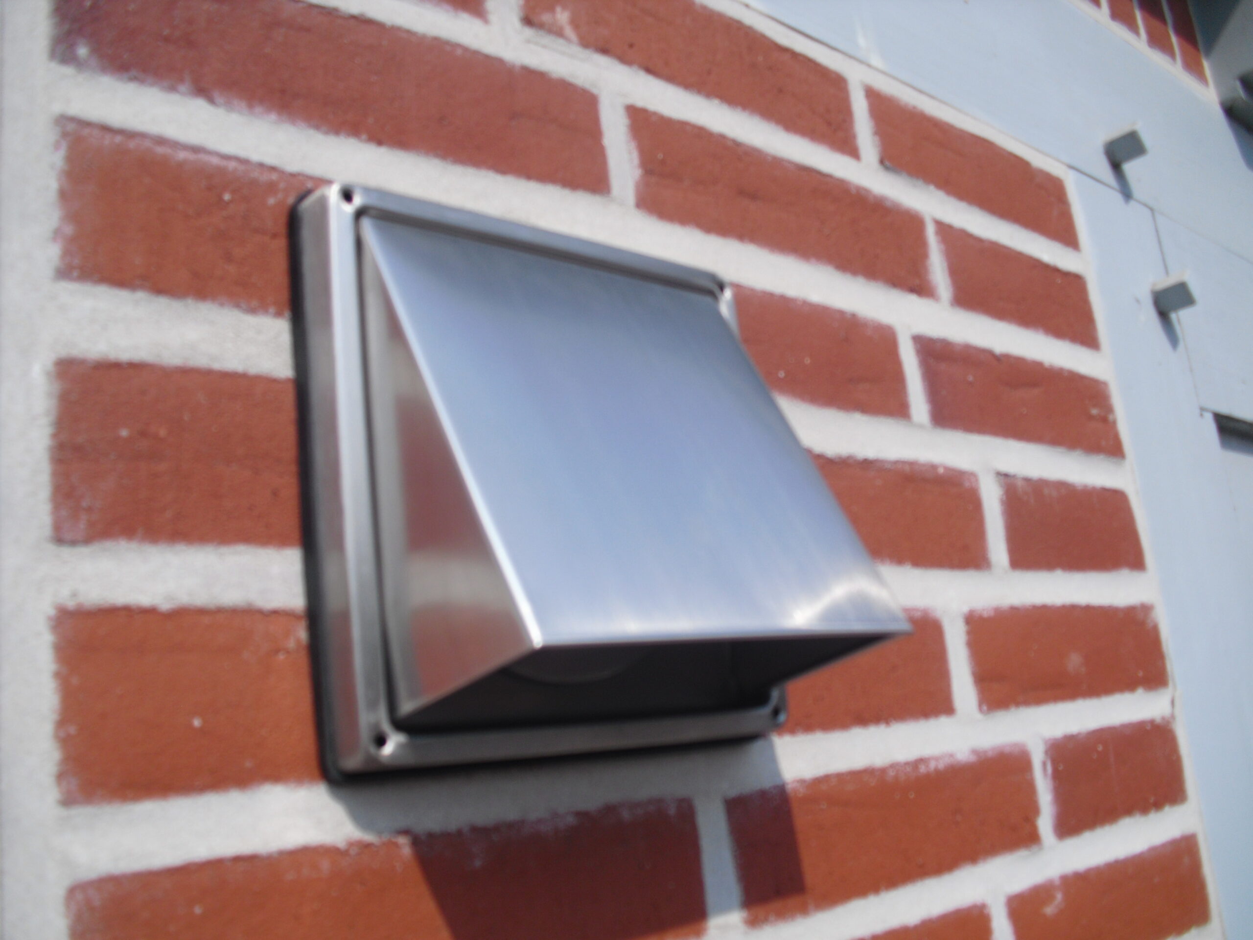 - Wetterschutzgitter WSHE aus Edelstahl mit Klappenblatt in der Haube, öffnet sich bei eingeschalteter Haube und schließt bei abgeschalteter Haube. Mit Gummidichtband zum Anschluss an die Außenfassade.