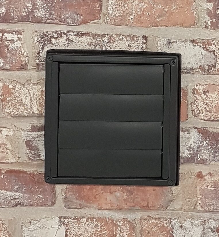 2 Grad Mauerkasten Ø 100, 125, 150 Rohr Set Edelstahl Dunstabzug Rückstauklappe 2GS1-R-MKWSQLE, runter zur Haube mit Aluflex