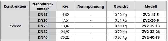 Nenndurchmesser: DN15; DN20; DN25; DN32; DN40