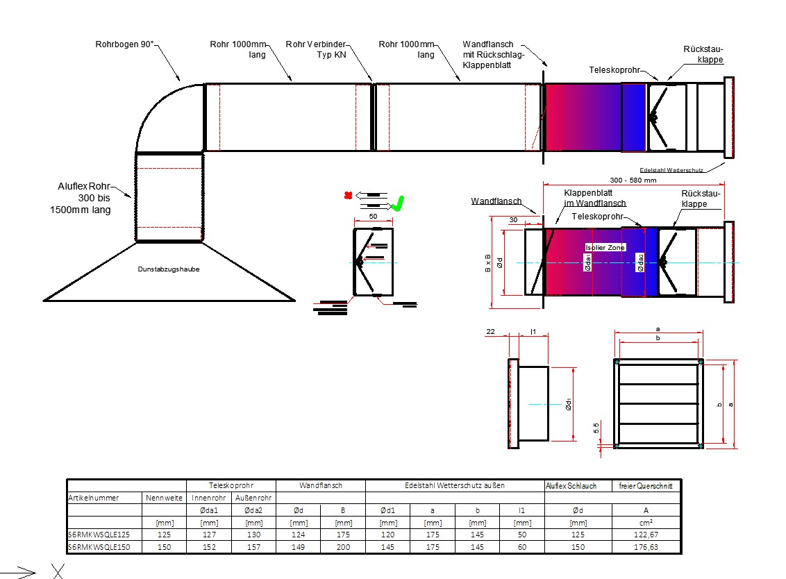 • mit Naber Thermobox im Teleskoprohr und Klappenblatt im Wandflansch